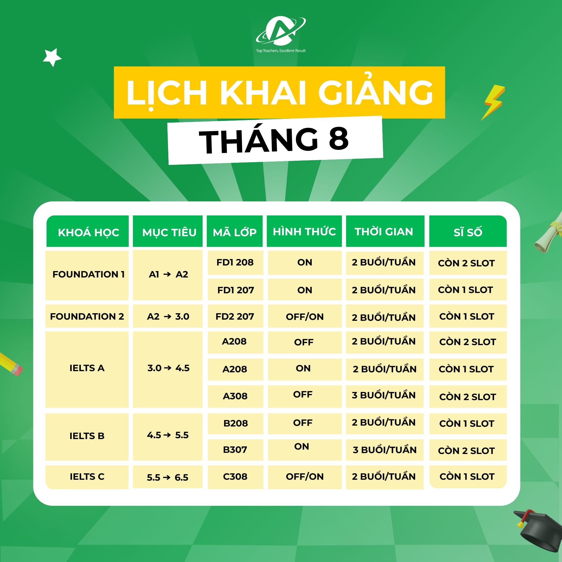 Các lớp IELTS tháng 8